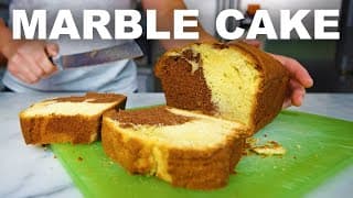 A step-by-step guide on how to make a marbled poundcake, combining two flavors in one batter.