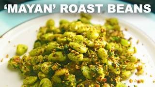 A unique vegetarian dish featuring Tok-sel lima beans, inspired by a recipe from the Mayan Café in Louisville, showcasing a blend of flavors and cooking techniques.