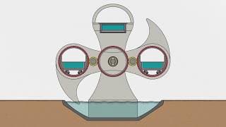 The Falkirk Wheel is a rotating boat lift in Scotland that connects two canals, showcasing innovative engineering design and functionality.