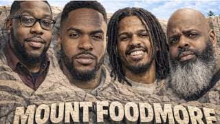 A playful take on the concept of a 'Mount Rushmore' of food creators, where viewers are invited to share their top four food influencers.