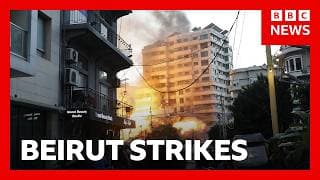 6:44Israel pounds Beirut suburbs after Hezbollah launches rocket barrage | BBC News