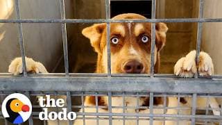 A rescued husky puppy featured in a heartwarming story of transformation and adoption, showcasing the importance of animal rescue efforts.