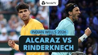 Highlights from the third-round match between rising tennis star Carlos Alcaraz and Arthur Rinderknech at the Indian Wells 2026 tournament.