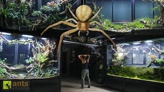 The Giant Forest Scorpion, known for its impressive size and unique behaviors, is featured in the video as part of the vivarium ecosystem.